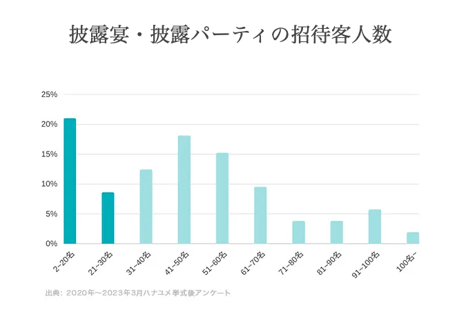 上記のグラフの通り、ハナユメ実施のアンケートでは、20名以下の少人数婚礼を選んだ方が全体の20%を超えています。